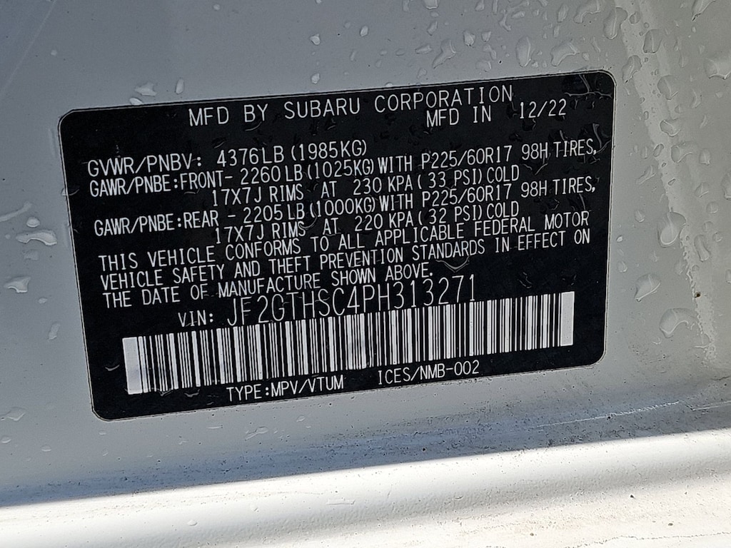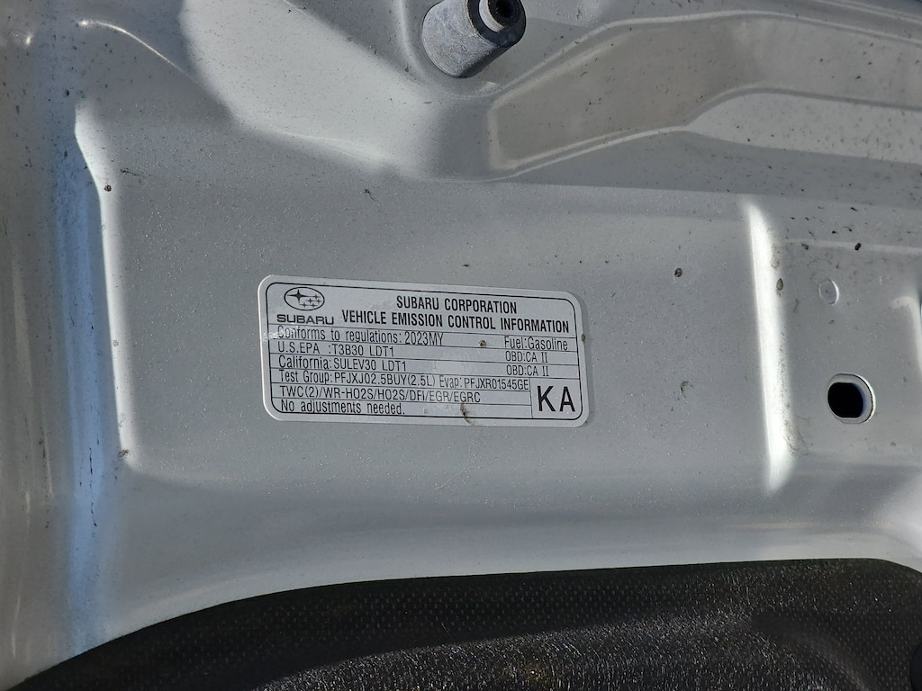 Subaru Certified Pre-Owned Certified, 3.70 Axle Ratio, 4-Wheel Disc Brakes, 6 Speakers, ABS brakes, Air Conditioning, Alloy wheels, AM/FM radio: SiriusXM, Anti-whiplash front head restraints, Automatic temperature control, Brake assist, Bumpers: body-color, CD player, Driver door bin, Driver vanity mirror, Dual front impact airbags, Dual front side impact airbags, Electronic Stability Control, Emergency communication system: STARLINK Safety and Security (Subscription Required), Exterior Parking Camera Rear, Four wheel independent suspension, Front anti-roll bar, Front Bucket Seats, Front Center Armrest, Front fog lights, Front reading lights, Fully automatic headlights, Heated door mirrors, Heated Front Bucket Seats, Heated front seats, Illuminated entry, Knee airbag, Leather Shift Knob, Low tire pressure warning, Occupant sensing airbag, Outside temperature display, Overhead airbag, Overhead console, Panic alarm, Passenger door bin, Passenger vanity mirror, Power door mirrors, Power steering, Power windows, Radio data system, Radio: Subaru STARLINK 6.5" Multimedia Plus System, Rear anti-roll bar, Rear window defroster, Rear window wiper, Remote keyless entry, Security system, Speed control, Speed-sensing steering, Split folding rear seat, Spoiler, STARLINK/Apple CarPlay/Android Auto, StarTex Upholstery, Steering wheel mounted audio controls, Tachometer, Telescoping steering wheel, Tilt steering wheel, Traction control, Trip computer, Turn signal indicator mirrors, Variably intermittent wipers, and Wheels: 17" x 7.0J Alum Alloy Dark Gray Met Finish.