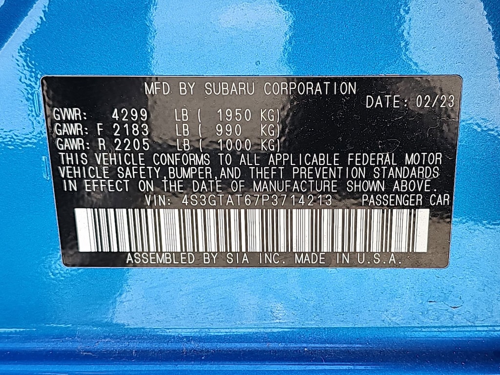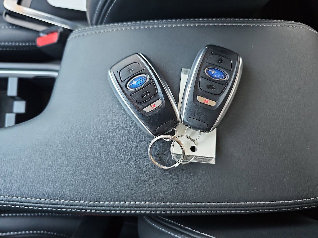 Standard Model, Subaru Certified Pre-Owned Certified, 4-Wheel Disc Brakes, 6 Speakers, ABS brakes, Air Conditioning, Alloy wheels, AM/FM radio: SiriusXM, Anti-whiplash front head restraints, Auto High-beam Headlights, Auto-Dimming Exterior Mirror w/Approach Light, Auto-Dimming Mirror w/Compass & HomeLink, Automatic temperature control, Brake assist, Bumpers: body-color, CD player, Delay-off headlights, Driver door bin, Driver vanity mirror, Dual front impact airbags, Dual front side impact airbags, Electronic Stability Control, Emergency communication system, Exterior Parking Camera Rear, Four wheel independent suspension, Front anti-roll bar, Front Bucket Seats, Front Center Armrest, Front fog lights, Front reading lights, Fully automatic headlights, Heated door mirrors, Heated Front Bucket Seats, Heated front seats, Illuminated entry, Knee airbag, Low tire pressure warning, Occupant sensing airbag, Outside temperature display, Overhead airbag, Overhead console, Panic alarm, Passenger door bin, Passenger vanity mirror, Perforated Leather-Trimmed Upholstery, Power door mirrors, Power driver seat, Power steering, Power windows, Radio data system, Radio: Subaru STARLINK 8.0" Multimedia Plus System, Rear anti-roll bar, Rear seat center armrest, Rear window defroster, Rear window wiper, Remote keyless entry, Security system, Speed control, Speed-sensing steering, Split folding rear seat, Spoiler, STARLINK/Apple CarPlay/Android Auto, Steering wheel mounted audio controls, Tachometer, Telescoping steering wheel, Tilt steering wheel, Traction control, Trip computer, Turn signal indicator mirrors, Variably intermittent wipers, and Wheels: 17" x 7.0" Machine Finish J Aluminum-Alloy.