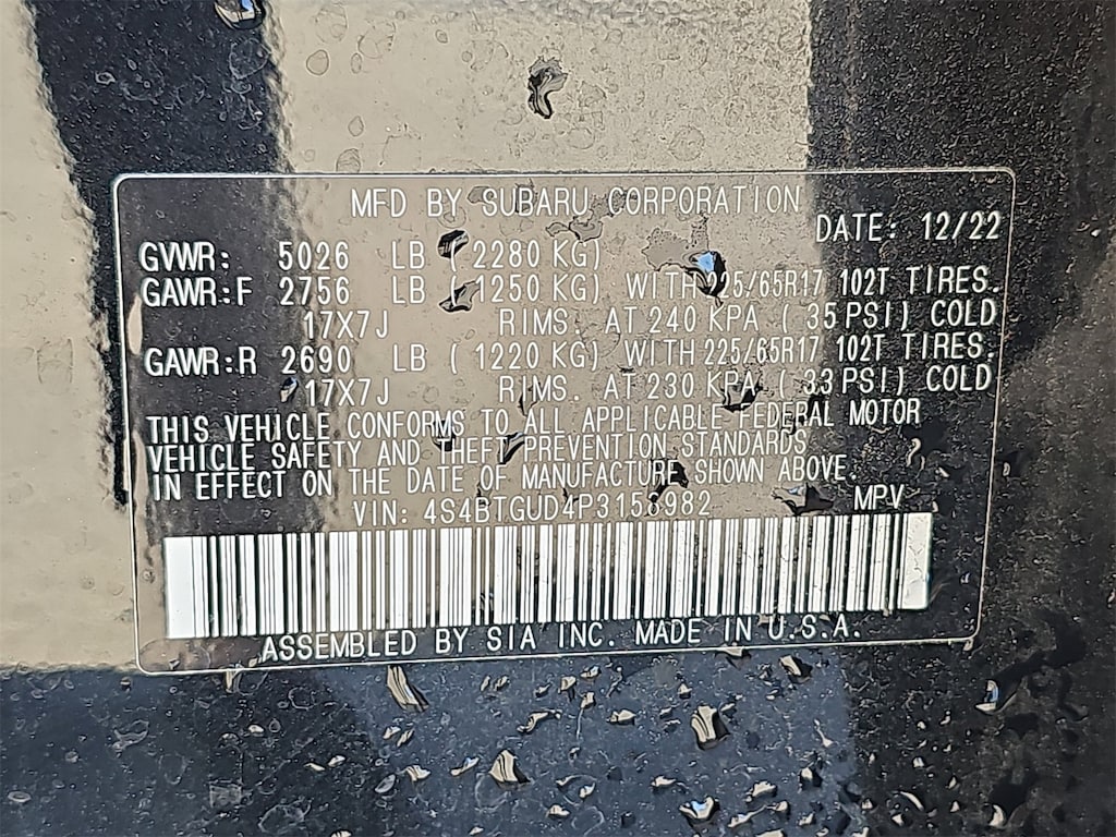 Certified, Sunroof/Moonroof, WARRANTY!!!, ONE OWNER!!. Power Moonroof & Navigation & RAB (Power Moonroof, Radio: Subaru STARLINK 11.6" Multimedia Nav System, and Reverse Automatic Braking (RAB) System), Subaru Certified Pre-Owned Certified, 4-Wheel Disc Brakes, 4.444 Axle Ratio, 6 Speakers, ABS brakes, Air Conditioning, Alloy wheels, AM/FM radio: SiriusXM, Auto High-beam Headlights, Auto-dimming Rear-View mirror, Automatic temperature control, Brake assist, Compass, Driver door bin, Driver vanity mirror, Dual front impact airbags, Dual front side impact airbags, Electronic Stability Control, Emergency communication system: STARLINK Safety Plus (3-year free trial), Exterior Parking Camera Rear, Four wheel independent suspension, Front anti-roll bar, Front Bucket Seats, Front Center Armrest w/Storage, Front dual zone A/C, Front fog lights, Front reading lights, Fully automatic headlights, Garage door transmitter: HomeLink, Heated door mirrors, Heated Front Bucket Seats, Heated front seats, Heated rear seats, Illuminated entry, Knee airbag, Leather steering wheel, Low tire pressure warning, Occupant sensing airbag, Outside temperature display, Overhead airbag, Overhead console, Panic alarm, Passenger door bin, Passenger vanity mirror, Power door mirrors, Power driver seat, Power Liftgate, Power passenger seat, Power steering, Power windows, Radio: Subaru STARLINK 11.6" Multimedia Plus Sys, Rear anti-roll bar, Rear Seat Back Protector, Rear seat center armrest, Rear window defroster, Rear window wiper, Remote keyless entry, Roof rack, Security system, Speed control, Speed-sensing steering, Split folding rear seat, Spoiler, StarTex-Trimmed Upholstery, Steering wheel mounted audio controls, Steering Wheel Paddle Shift Control Switches, Tachometer, Telescoping steering wheel, Tilt steering wheel, Traction control, Trip computer, Turn signal indicator mirrors, Variably intermittent wipers, Wheels: 17" x 7J Black Aluminum Alloy, Windshield Sunshade, and Wireless Charger.