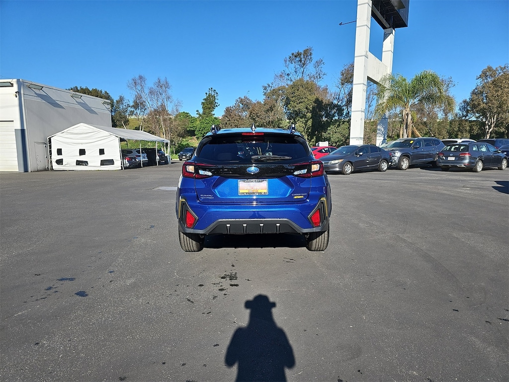 BSD/RCTA & Power Driver Seat & Power Moonroof (10-Way Power Driver's Seat, Blind Spot Detection (BSD), Power Moonroof, and Rear Cross-Traffic Alert (RCTA) System), Crosstrek Mirror Package (Auto-Dimming Exterior Mirror w/Approach Light and Auto-Dimming Mirror w/Compass & HomeLink), 4-Wheel Disc Brakes, 6 Speakers, ABS brakes, Air Conditioning, All-Weather Floor Liners, Alloy wheels, AM/FM radio: SiriusXM, Anti-whiplash front head restraints, Auto High-beam Headlights, Automatic temperature control, Brake assist, Bumpers: body-color, Driver door bin, Driver vanity mirror, Dual front impact airbags, Dual front side impact airbags, Electronic Stability Control, Emergency communication system, Exterior Parking Camera Rear, Four wheel independent suspension, Front anti-roll bar, Front Bucket Seats, Front Center Armrest, Front dual zone A/C, Front fog lights, Front reading lights, Fully automatic headlights, Heated door mirrors, Heated Front Bucket Seats, Heated front seats, Illuminated entry, Knee airbag, Leather Shift Knob, Leather steering wheel, LED Upgrade, Low tire pressure warning, Occupant sensing airbag, Outside temperature display, Overhead airbag, Overhead console, Panic alarm, Passenger door bin, Passenger vanity mirror, Power door mirrors, Power steering, Power windows, Radio data system, Radio: Subaru 11.6" Multimedia Plus System, Rear anti-roll bar, Rear seat center armrest, Rear Seatback Protector, Rear window defroster, Rear window wiper, Remote keyless entry, Security system, Speed control, Speed-sensing steering, Split folding rear seat, Spoiler, Sport Cloth Upholstery, Steering wheel mounted audio controls, Tachometer, Telescoping steering wheel, Tilt steering wheel, Traction control, Trip computer, Turn signal indicator mirrors, Variably intermittent wipers, and Wheels: 18" x 7.0" J Dark Gray Aluminum-Alloy.