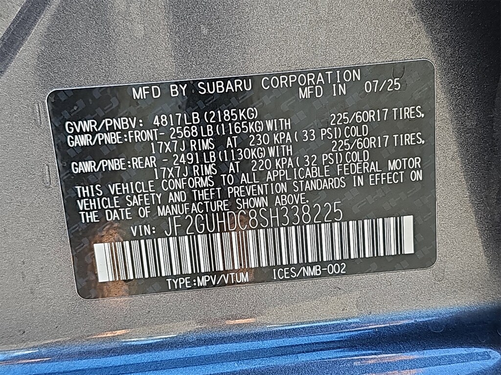 Certified, CLEAN CARFAX, WARRANTY!!!, ONE OWNER!!. Subaru Certified Pre-Owned Certified, 4-Wheel Disc Brakes, 6 Speakers, ABS brakes, Air Conditioning, Alloy wheels, AM/FM radio: SiriusXM, Anti-whiplash front head restraints, Auto High-beam Headlights, Automatic temperature control, Brake assist, Bumpers: body-color, Cloth Upholstery, Driver door bin, Driver vanity mirror, Dual front impact airbags, Dual front side impact airbags, Electronic Stability Control, Emergency communication system, Exterior Parking Camera Rear, Four wheel independent suspension, Front anti-roll bar, Front Bucket Seats, Front Center Armrest, Front dual zone A/C, Front fog lights, Front reading lights, Fully automatic headlights, Illuminated entry, Knee airbag, Low tire pressure warning, Occupant sensing airbag, Outside temperature display, Overhead airbag, Overhead console, Panic alarm, Passenger door bin, Passenger vanity mirror, Power door mirrors, Power steering, Power windows, Radio data system, Radio: Subaru 11.6" Multimedia Plus System, Rear anti-roll bar, Rear seat center armrest, Rear window defroster, Rear window wiper, Remote keyless entry, Security system, Speed control, Speed-sensing steering, Split folding rear seat, Spoiler, Steering wheel mounted audio controls, Tachometer, Telescoping steering wheel, Tilt steering wheel, Traction control, Trip computer, Turn signal indicator mirrors, Variably intermittent wipers, and Wheels: 17" x 7.0" J Machine Finish Aluminum-Alloy.