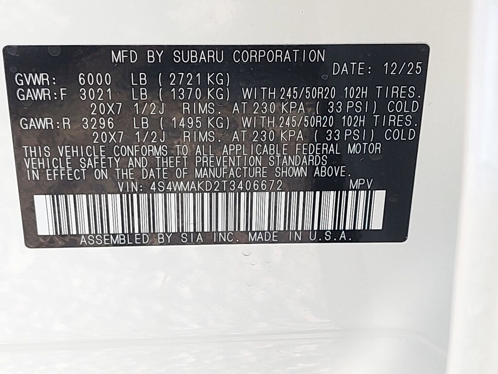• Front tires: 245/50HR20.0