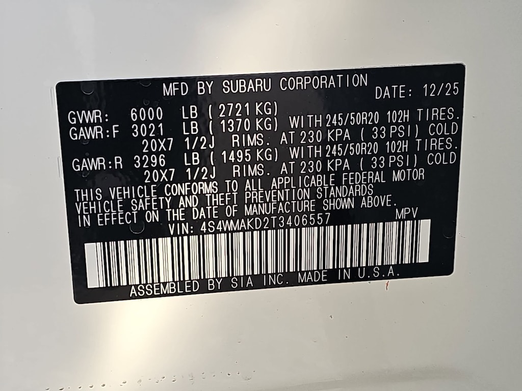 • Front tires: 245/50HR20.0