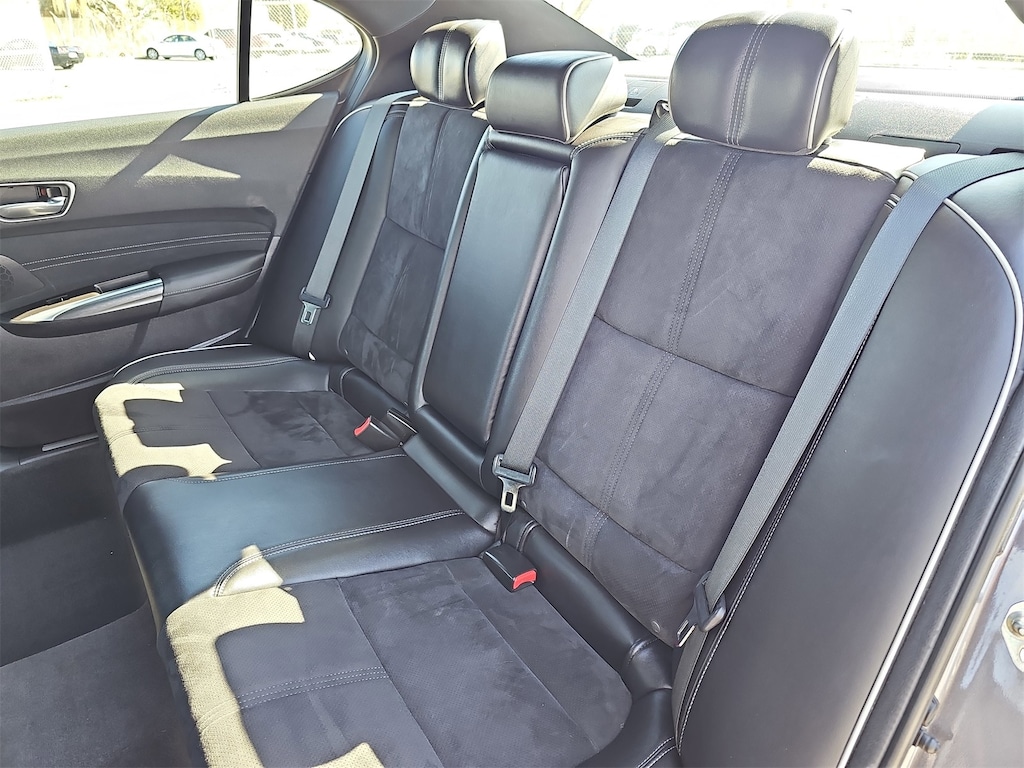 10 Speakers, 4-Wheel Disc Brakes, ABS brakes, Acura Navigation System w/3D View, Air Conditioning, Alloy wheels, AM/FM radio: SiriusXM, Anti-whiplash front head restraints, Apple CarPlay/Android Auto, Auto High-beam Headlights, Auto-dimming Rear-View mirror, Automatic temperature control, Brake assist, Bumpers: body-color, CD player, Compass, Delay-off headlights, Driver door bin, Driver vanity mirror, Dual front impact airbags, Dual front side impact airbags, Electronic Stability Control, Emergency communication system: AcuraLink, Exterior Parking Camera Rear, Four wheel independent suspension, Front anti-roll bar, Front Bucket Seats, Front Center Armrest w/Storage, Front dual zone A/C, Front fog lights, Front reading lights, Garage door transmitter: HomeLink, Heated & Ventilated Front Sport Seats, Heated door mirrors, Heated front seats, HVAC memory, Illuminated entry, Knee airbag, Lane departure: Lane Keeping Assist System (LKAS) active, Leather steering wheel, Low tire pressure warning, Memory seat, Navigation System, Occupant sensing airbag, Outside temperature display, Overhead airbag, Panic alarm, Passenger door bin, Passenger vanity mirror, Power door mirrors, Power driver seat, Power moonroof, Power passenger seat, Power steering, Power windows, Premium audio system: Acura/ELS Surround, Radio data system, Radio: ELS Studio Premium Audio System, Rain sensing wipers, Rear anti-roll bar, Rear reading lights, Rear seat center armrest, Rear window defroster, Remote keyless entry, Security system, Speed control, Speed-sensing steering, Speed-Sensitive Wipers, Split folding rear seat, Spoiler, Sport steering wheel, Steering wheel mounted audio controls, Tachometer, Telescoping steering wheel, Tilt steering wheel, Traction control, Trip computer, Turn signal indicator mirrors, Variably intermittent wipers, Ventilated front seats, and Wheels: 19" x 8.0" Shark Gray Aluminum Alloy.