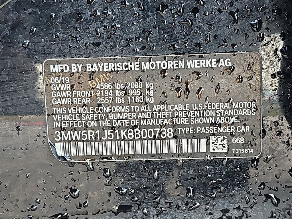 Connected Package Pro, 10 Speakers, 4-Wheel Disc Brakes, ABS brakes, Active Blind Spot Detection, Active Driving Assistant, Active Park Distance Control, Air Conditioning, Alloy wheels, AM/FM radio, Apple CarPlay Compatibility, Auto-dimming door mirrors, Auto-dimming Rear-View mirror, Automatic temperature control, Brake assist, Bumpers: body-color, Comfort Access Keyless Entry, Delay-off headlights, Driver door bin, Driver vanity mirror, Dual front impact airbags, Dual front side impact airbags, Electronic Stability Control, Emergency communication system: BMW Assist eCall, Exterior Parking Camera Rear, Four wheel independent suspension, Front anti-roll bar, Front Bucket Seats, Front Center Armrest, Front dual zone A/C, Front reading lights, Fully automatic headlights, Garage door transmitter, Genuine wood console insert, Genuine wood dashboard insert, Hands-Free Bluetooth & USB Audio Connection, HD Radio, Heated door mirrors, Heated Front Seats, Hi-Fi Sound System, Illuminated entry, Leather Shift Knob, Leather steering wheel, LED Headlights w/Cornering Lights, Live Cockpit Pro, Low tire pressure warning, Lumbar Support, Memory seat, Occupant sensing airbag, Outside temperature display, Overhead airbag, Panic alarm, Parking Assistant Plus, Passenger door bin, Passenger vanity mirror, Power door mirrors, Power driver seat, Power Front Seats, Power moonroof, Power passenger seat, Power steering, Power windows, Radio data system, Radio: AM/FM Audio System, Rain sensing wipers, Rear air conditioning, Rear anti-roll bar, Rear reading lights, Rear seat center armrest, Rear window defroster, Remote Engine Start, Remote keyless entry, Security system, SensaTec Upholstery, SiriusXM Satellite Radio, Speed control, Speed-sensing steering, Speed-Sensitive Wipers, Split folding rear seat, Sport Seats, Sport steering wheel, Steering wheel mounted audio controls, Surround View w/3D View, Tachometer, Telescoping steering wheel, Tilt steering wheel, Traction control, Trip computer, Turn signal indicator mirrors, Variably intermittent wipers, and Wheels: 18" x 7.5" V-Spoke Bi-Color Orbit Grey.