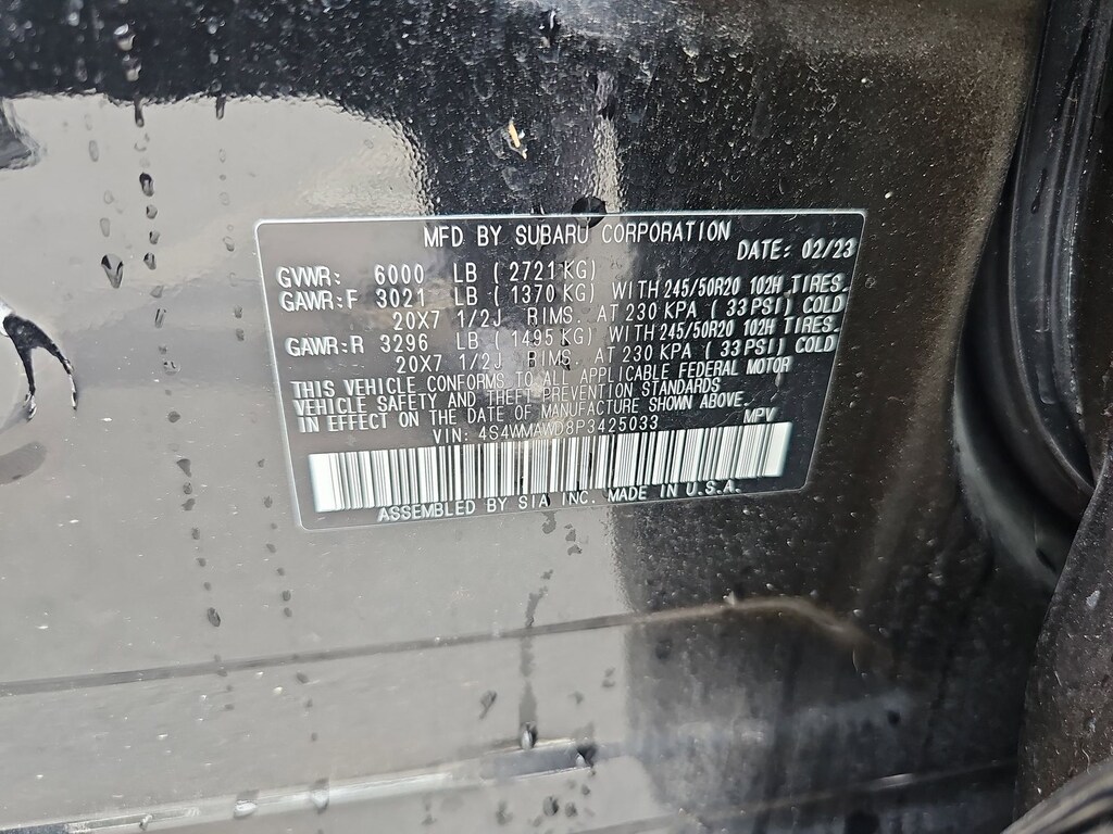 Standard Model, Subaru Certified Pre-Owned Certified, 14 Speakers, 3rd row seats: bench, 4-Wheel Disc Brakes, ABS brakes, Air Conditioning, Alloy wheels, AM/FM radio: SiriusXM, Auto High-beam Headlights, Auto-Dimming Exterior Mirror w/Approach Light, Auto-dimming Rear-View mirror, Automatic temperature control, Axle Ratio: 4.44, Brake assist, Bumpers: body-color, Compass, Delay-off headlights, Driver door bin, Driver vanity mirror, Dual front impact airbags, Dual front side impact airbags, Electronic Stability Control, Emergency communication system: STARLINK Safety and Security (Subscription Required), Four wheel independent suspension, Front anti-roll bar, Front Bucket Seats, Front Center Armrest, Front dual zone A/C, Front fog lights, Front reading lights, Fully automatic headlights, Garage door transmitter: HomeLink, harman/kardon® Speakers, Heated & Ventilated Front Bucket Seats, Heated door mirrors, Heated front seats, Heated rear seats, Heated steering wheel, HVAC memory, Illuminated entry, Knee airbag, Leather Shift Knob, Leather steering wheel, Low tire pressure warning, Memory seat, Navigation System, Occupant sensing airbag, Outside temperature display, Overhead airbag, Overhead console, Panic alarm, Passenger door bin, Passenger vanity mirror, Perforated Nappa Leather-Trimmed Upholstery, Power door mirrors, Power driver seat, Power Liftgate, Power moonroof, Power passenger seat, Power steering, Power windows, Radio data system, Radio: Subaru STARLINK 11.6" Multimedia Nav System, Rain sensing wipers, Rear air conditioning, Rear anti-roll bar, Rear Bumper Cover, Rear reading lights, Rear window defroster, Rear window wiper, Reclining 3rd row seat, Remote keyless entry, Security system, Speed control, Speed-sensing steering, Splash Guards, Split folding rear seat, Spoiler, STARLINK/Apple CarPlay/Android Auto, Steering wheel mounted audio controls, Tachometer, Telescoping steering wheel, Tilt steering wheel, Traction control, Trip computer, Turn signal indicator mirrors, Variably intermittent wipers, Ventilated front seats, Wheels: 20" x 7.5 J Dk Gray Alloy w/Machine Finish, and Windshield Sunshade.