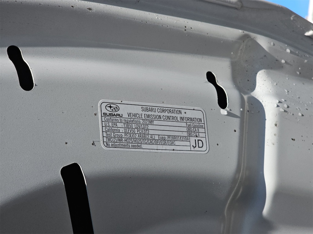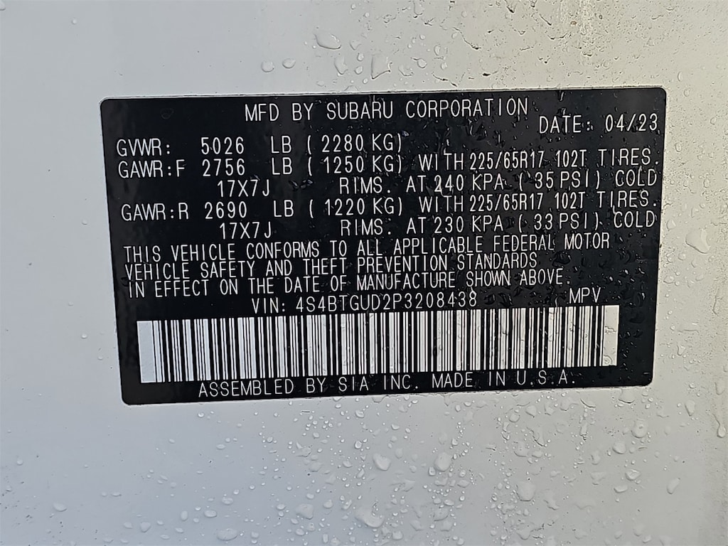 Power Moonroof & Navigation & RAB (Power Moonroof, Radio: Subaru STARLINK 11.6" Multimedia Nav System, and Reverse Automatic Braking (RAB) System), 4-Wheel Disc Brakes, 4.444 Axle Ratio, 6 Speakers, ABS brakes, Air Conditioning, Alloy wheels, AM/FM radio: SiriusXM, Auto High-beam Headlights, Auto-Dimming Exterior Mirror w/Approach Light, Auto-dimming Rear-View mirror, Automatic temperature control, Brake assist, Compass, Crystal White Pearl Body Side Molding, Driver door bin, Driver vanity mirror, Dual front impact airbags, Dual front side impact airbags, Electronic Stability Control, Emergency communication system: STARLINK Safety Plus (3-year free trial), Exterior Parking Camera Rear, Four wheel independent suspension, Front anti-roll bar, Front Bucket Seats, Front Center Armrest w/Storage, Front dual zone A/C, Front fog lights, Front reading lights, Fully automatic headlights, Garage door transmitter: HomeLink, Heated door mirrors, Heated Front Bucket Seats, Heated front seats, Heated rear seats, Illuminated entry, Knee airbag, Leather steering wheel, Low tire pressure warning, Occupant sensing airbag, Outside temperature display, Overhead airbag, Overhead console, Panic alarm, Passenger door bin, Passenger vanity mirror, Power door mirrors, Power driver seat, Power Liftgate, Power passenger seat, Power steering, Power windows, Radio: Subaru STARLINK 11.6" Multimedia Plus Sys, Rear anti-roll bar, Rear Seat Back Protector, Rear seat center armrest, Rear window defroster, Rear window wiper, Remote keyless entry, Roof rack, Security system, Speed control, Speed-sensing steering, Split folding rear seat, Spoiler, StarTex-Trimmed Upholstery, Steering wheel mounted audio controls, Steering Wheel Paddle Shift Control Switches, Tachometer, Telescoping steering wheel, Tilt steering wheel, Traction control, Trip computer, Turn signal indicator mirrors, Variably intermittent wipers, and Wheels: 17" x 7J Black Aluminum Alloy.