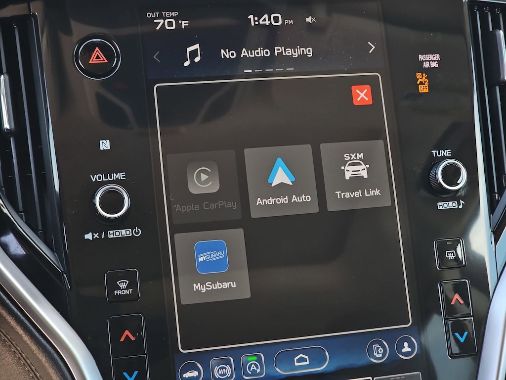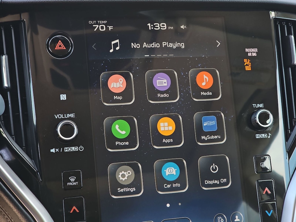 Subaru Certified Pre-Owned Certified, 12 Speakers, 3.90 Axle Ratio, 4-Wheel Disc Brakes, ABS brakes, Air Conditioning, Alloy wheels, AM/FM radio: SiriusXM, Auto High-beam Headlights, Auto-dimming Rear-View mirror, Automatic temperature control, Brake assist, Bumpers: body-color, Compass, Driver door bin, Driver vanity mirror, Dual front impact airbags, Dual front side impact airbags, Electronic Stability Control, Emergency communication system: STARLINK Safety Plus (3-year free trial), Exterior Parking Camera Rear, Four wheel independent suspension, Front anti-roll bar, Front Bucket Seats, Front Center Armrest w/Storage, Front dual zone A/C, Front fog lights, Front reading lights, Fully automatic headlights, Garage door transmitter: HomeLink, harman/kardon® Speakers, Heated door mirrors, Heated Front Bucket Seats, Heated front seats, Heated rear seats, Illuminated entry, Knee airbag, Leather Shift Knob, Leather steering wheel, Low tire pressure warning, Memory seat, Occupant sensing airbag, Outside temperature display, Overhead airbag, Overhead console, Panic alarm, Passenger door bin, Passenger vanity mirror, Perforated Leather-Trimmed Upholstery, Power door mirrors, Power driver seat, Power Liftgate, Power passenger seat, Power steering, Power windows, Radio: Subaru STARLINK 11.6" Multimedia Plus Sys, Rear anti-roll bar, Rear seat center armrest, Rear window defroster, Rear window wiper, Remote keyless entry, Roof rack, Security system, Speed control, Speed-sensing steering, Split folding rear seat, Spoiler, Steering wheel mounted audio controls, Steering Wheel Paddle Shift Control Switches, Tachometer, Telescoping steering wheel, Tilt steering wheel, Traction control, Trip computer, Turn signal indicator mirrors, Variably intermittent wipers, and Wheels: 18" x 7J Black Aluminum Alloy.