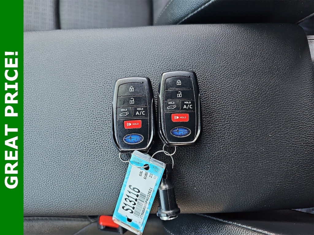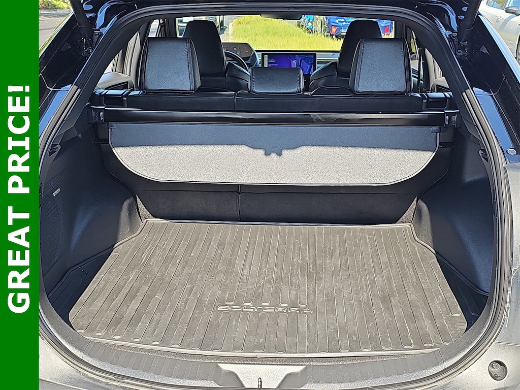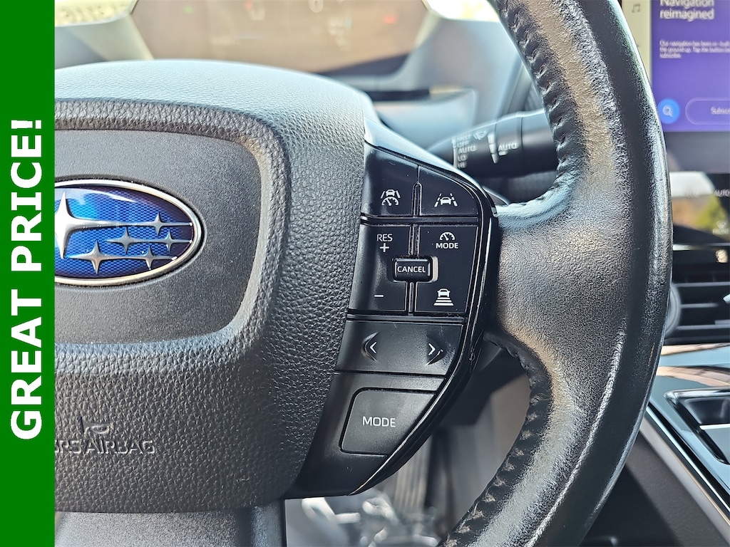 CLEAN CARFAX, ONE OWNER!!. 11 Speakers, 13.8 Axle Ratio, 4-Wheel Disc Brakes, ABS brakes, Air Conditioning, Alloy wheels, AM/FM radio: SiriusXM, Auto High-beam Headlights, Auto-dimming Rear-View mirror, Automatic temperature control, Brake assist, Bumpers: body-color, Driver door bin, Driver vanity mirror, Dual front impact airbags, Dual front side impact airbags, Electronic Stability Control, Emergency communication system: Subaru Solterra Connect - Safety Connect (1 year trial included), Four wheel independent suspension, Front anti-roll bar, Front Bucket Seats, Front Center Armrest, Front dual zone A/C, Front fog lights, Front reading lights, Fully automatic headlights, Garage door transmitter: HomeLink, harman/kardon® Speakers, Heated & Ventilated Front Bucket Seats, Heated door mirrors, Heated front seats, Heated rear seats, Heated steering wheel, Illuminated entry, Knee airbag, Leather steering wheel, Low tire pressure warning, Memory seat, Navigation system: Cloud Navigation System (Subscription required), Occupant sensing airbag, Outside temperature display, Overhead airbag, Overhead console, Panic alarm, Passenger door bin, Passenger vanity mirror, Power door mirrors, Power driver seat, Power Liftgate, Power steering, Power windows, Radio data system, Radio: Subaru Solterra Connect 12.3" Multimedia System, Rain sensing wipers, Rear anti-roll bar, Rear reading lights, Rear seat center armrest, Rear window defroster, Remote keyless entry, Security system, Speed control, Speed-sensing steering, Split folding rear seat, Spoiler, StarTex Upholstery, Steering wheel mounted audio controls, Telescoping steering wheel, Tilt steering wheel, Traction control, Trip computer, Turn signal indicator mirrors, Variably intermittent wipers, Ventilated front seats, and Wheels: 20" x 7.5" J Aluminum-Alloy Gray Finish.